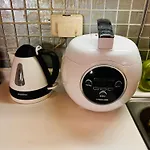 Guests can enjoy the convenience of an equipped kitchen with an electric kettle, a fridge, and a toaster for self-catering needs.